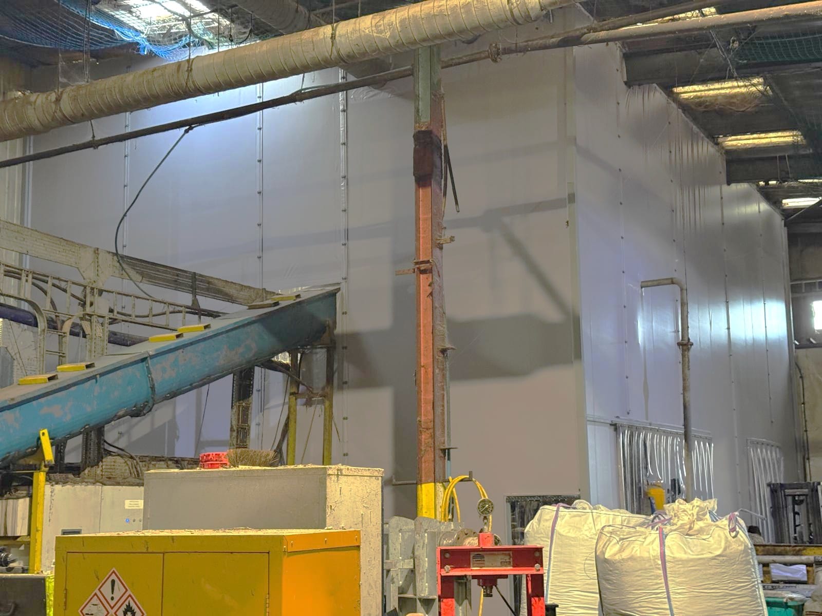 • Panels were connected using a dust-tight Vee join system, helping to contain dust and odours, and maintain a controlled environment.