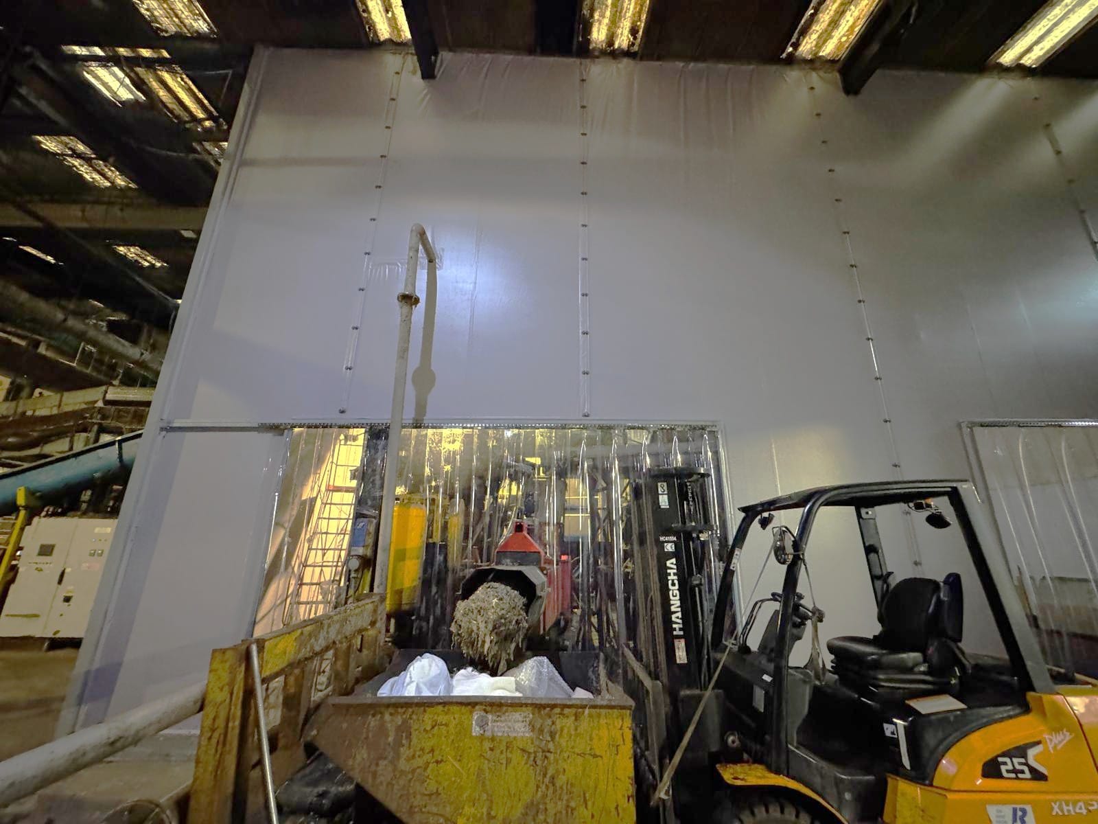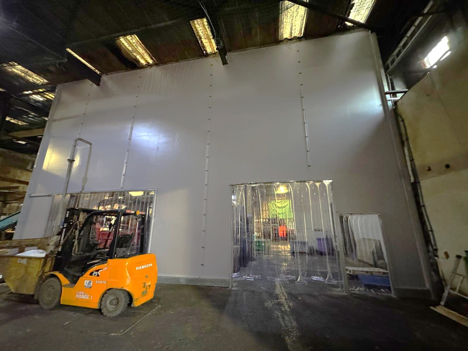 • UPVC strip curtain doorways were installed for forklift truck access, allowing smooth movement while maintaining separation between areas.